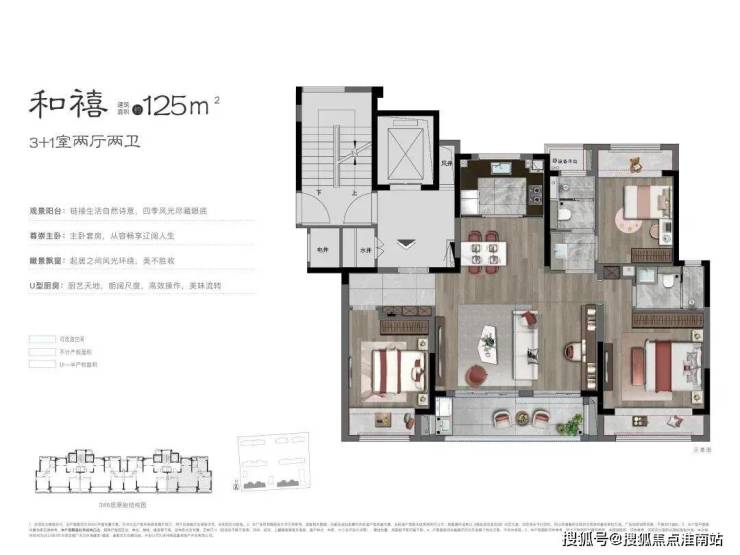 建面约125㎡3+1房2厅2卫小高层户型,是整个板块的天花板级别,越级享受堪比改善大宅!