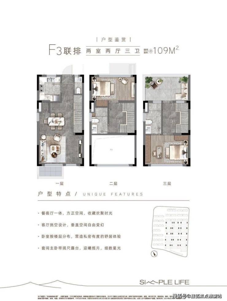 在售面积:洋房75㎡(已售罄)、联排98/106/109㎡