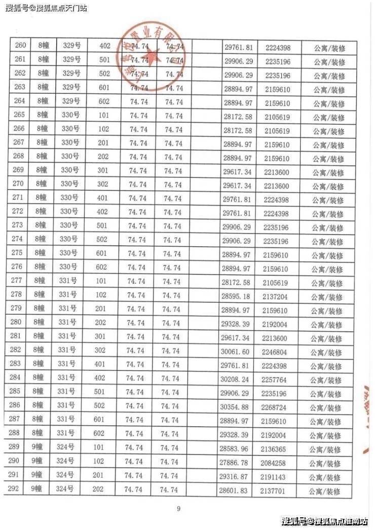岛上的院子一房一价表: