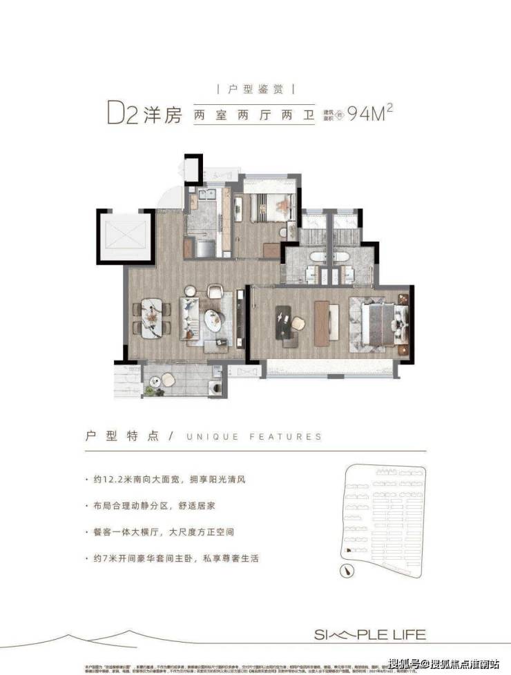 建面约94㎡两室两厅两卫