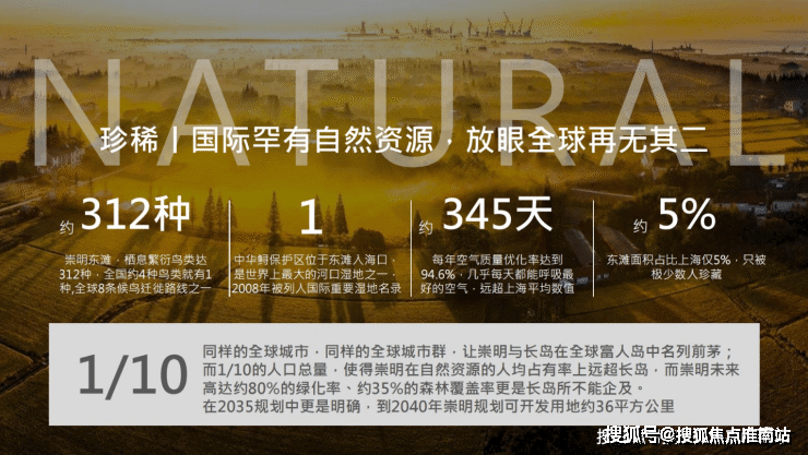 东滩湿地项目岛上的院子售楼处电话:400-9939-964上海崇明路劲象屿岛上的院子售楼处电话:400-9939-964,相当于232个世纪公园,这里仅已记录的鸟类就达312种,约占中国鸟类的1/4。此外,这里还生活着10种兽类,94种鱼类和31种甲壳类,其中就有著名的国家一级保护野生动物中华鲟。