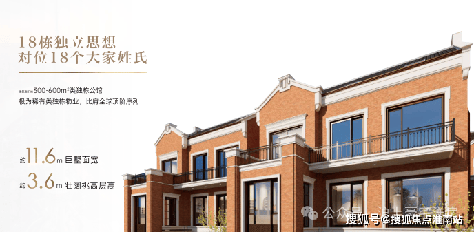 建筑风格融合现代美学与海派建筑风格,外立面复刻老上海里弄肌理,红砖墙面搭配雕花窗棂,庭院深深,还原出 “海上名园” 的独特意境。户型设计上,约 11.6 米的巨墅面宽,气派非凡,堪比五星级酒店大堂;最大约 289㎡的南北双院,满足业主种植花草、休闲娱乐等多样化需求。