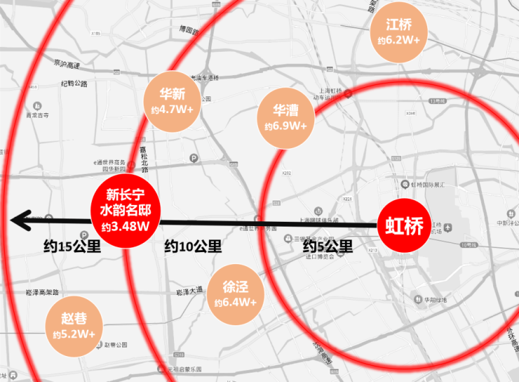 距崧泽高架入口约1.5公里,无红绿灯直达虹桥商务区,早高峰至虹桥约25分钟