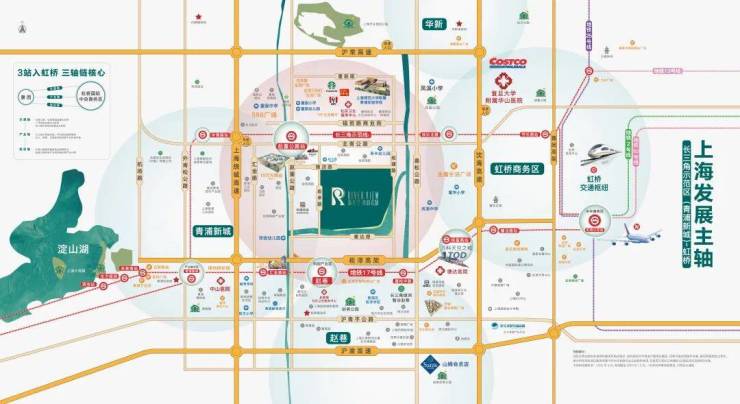 另外在示范区线赵重公路站(在建)规划约19万方商业,沿示范区线还可以到达虹桥前湾的开市客和虹桥枢纽的虹桥天地和虹桥天街。