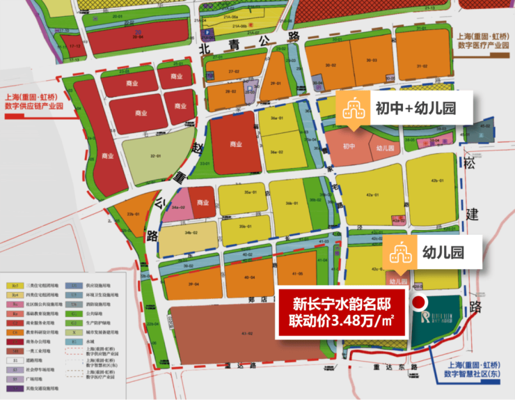 同时,新长宁水韵名邸位于重固南部,规划能级相对较高,重固南部虹桥无界百创城,聚焦数字经济,构建一核两翼,引领未来产业高地。其中,生命健康创新之核布局细胞疗法等精准医学领域研发机构;数字绿色科技产业“未来之翼”构建新能源、智能网联汽车配套集群;总部和服务经济“活力之翼”,导入长三角民营企业总部,链接国际市场。