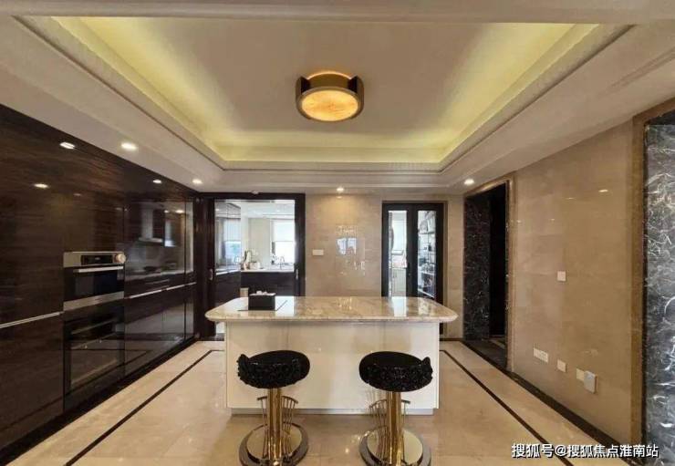 朝南开间搭配大平层露台风景,在餐厅依然可以享受露台上延伸出去的风景;岛台与封闭厨房形成了中西厨一体的格局,宽敞的空间与窗外怡人的风景,令日常烹饪也多了几分灵动意趣。