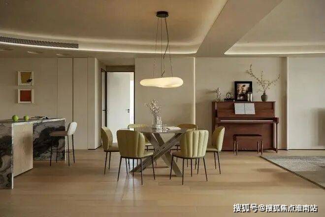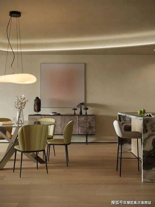 客餐厅以连贯视角奠定视觉基调,顶面弧线替代尖锐线条,贯穿空间削弱压迫感,延伸视觉开阔度。柔和暖色调交织出丰富层次,搭配弯曲线条勾勒轮廓,营造松弛宁静的生活氛围,弧线更成为串联空间的点睛之笔。
