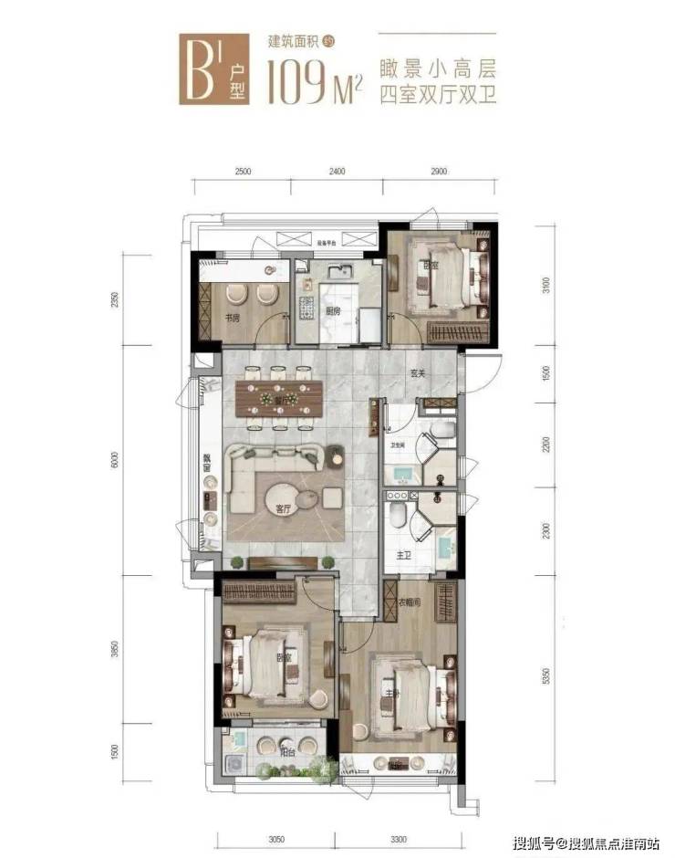 以小高层建面约109㎡的边套为例,居然做到了四房。这是充分考虑到了孩子上学后的住房需求,因为老人很可能要住过来照顾孩子,一家三代人,四房肯定要的。