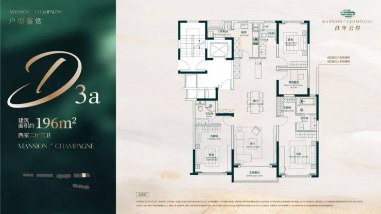 建面约196㎡4房2厅3卫户型▼