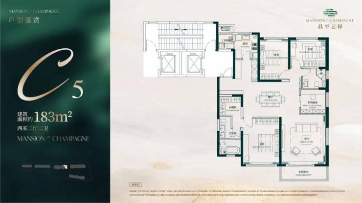 建面约183㎡4房2厅2卫户型▼