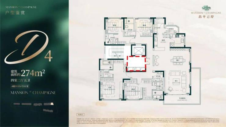 建面约274㎡4房2厅5卫户型▼