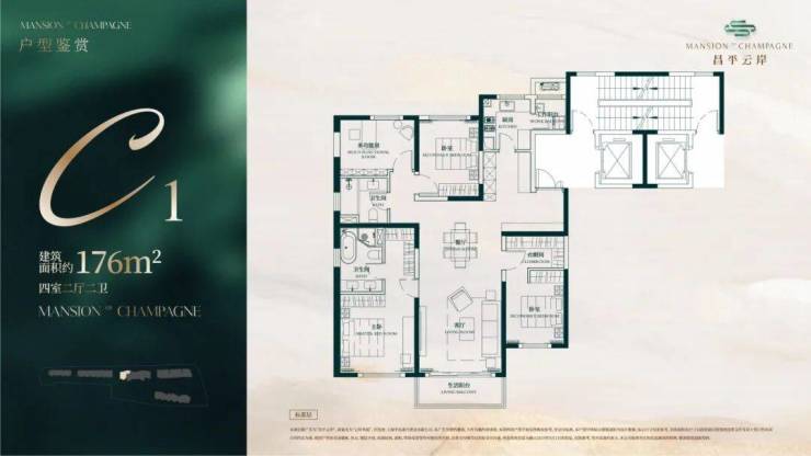 建面约176㎡4房2厅2卫户型▼