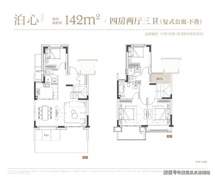 项目叠墅户型有建面约142㎡下叠,建面约139㎡上叠。项目叠墅摒弃市场上5-6层叠加的困局,设计更大化私密尊享空间。