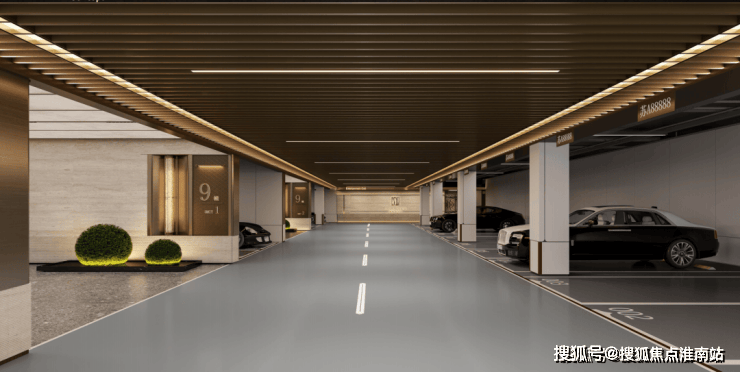 即便是常被忽视的地库空间,也以星空顶入户、铝板格栅车道、水磨石地坪及岩板灯光幕墙等设计,赋予归家动线以仪式感.