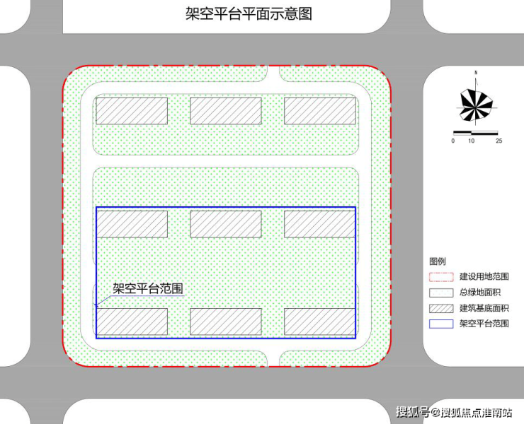 居住用地内位于底层架空平台下方的停车空间,结构层高应不大于4.5米,以平台(含覆土)面层作为室外地坪计算平台以上的建筑基底面积、绿地面积。