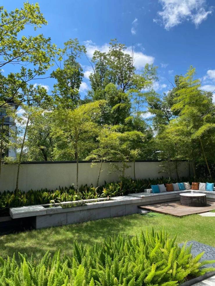 春山明月园内有1个湖泊、3条溪流,仅水域面积就达约2.2万㎡。所有的山体、池塘和树林,都尽量保留原生态,草木华滋、老树婆娑。那种时光包浆出的矜贵,谁能高周转复制?