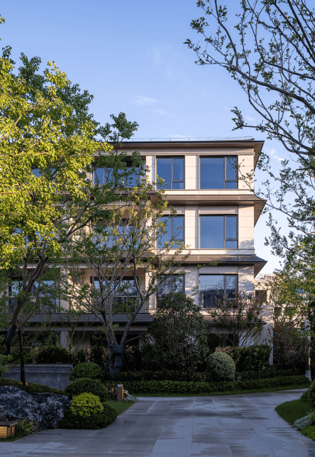 以上海之鱼江南风为底色融汇新亚洲风格,精选材质构筑简洁明快的外立面,运用精细化材料与工艺打造出轻盈檐口与精致线脚,构建平展、舒卷、优美、儒雅、精致的新江南建筑艺术。