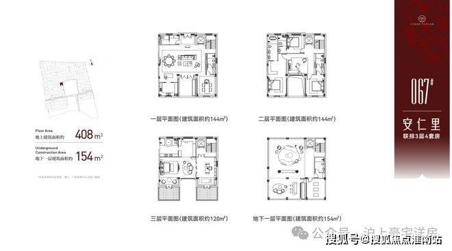 地上建筑面积约408㎡户型,地下一层建筑面积约154㎡。