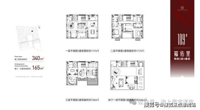 地上建筑面积约340㎡户型,地下一层建筑面积约165㎡。