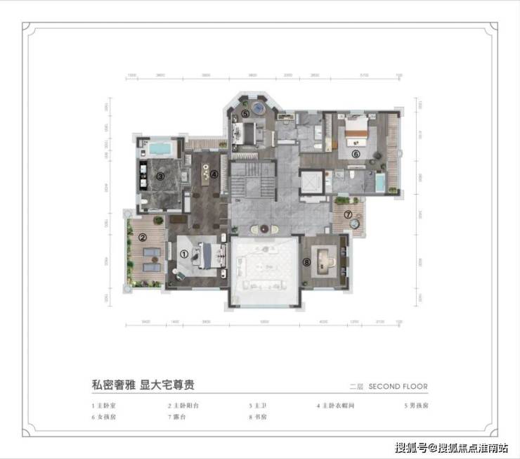约639㎡主力户型:5室3厅,动静分区明显,居住舒适度高;