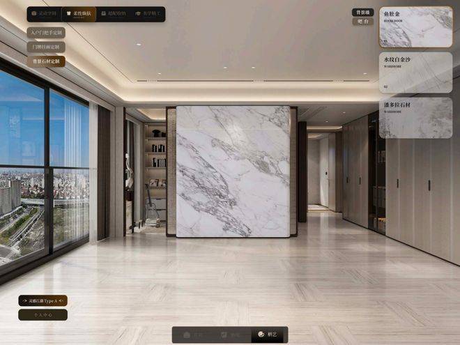 小到入户门把手、门牌号,大到石材背景墙、岛台、厨房墙面等关键界面,均可在澐启滨江提供的选项中挑选你最喜欢的风格、纹理。