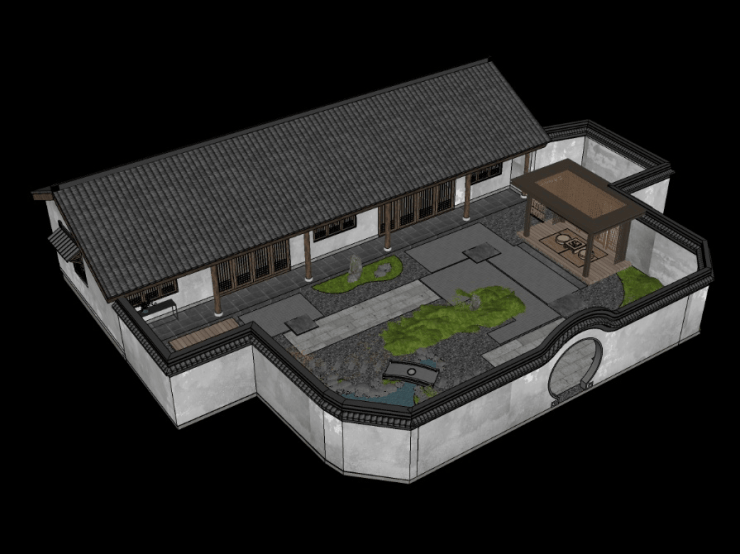 建筑形态:独栋/合院别墅,粉墙黛瓦中式风格