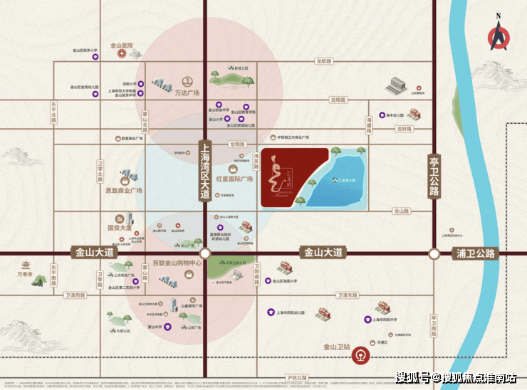 教育方面:项目北侧约400m区域集齐了金山新城幼儿园,金山小学、金山初级中学,配置了全龄化的教育资源。