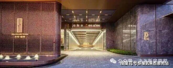 地上大堂,单元门厅的雨棚采用香槟金的弧面铝板、立面干挂爱马仕灰蜂窝岩板,岩板上嵌入专属楼栋号,单元门两侧的弧线段金属采用定制模具加工。大华星曜售楼处电话☎:400-8567-004☑️☑️