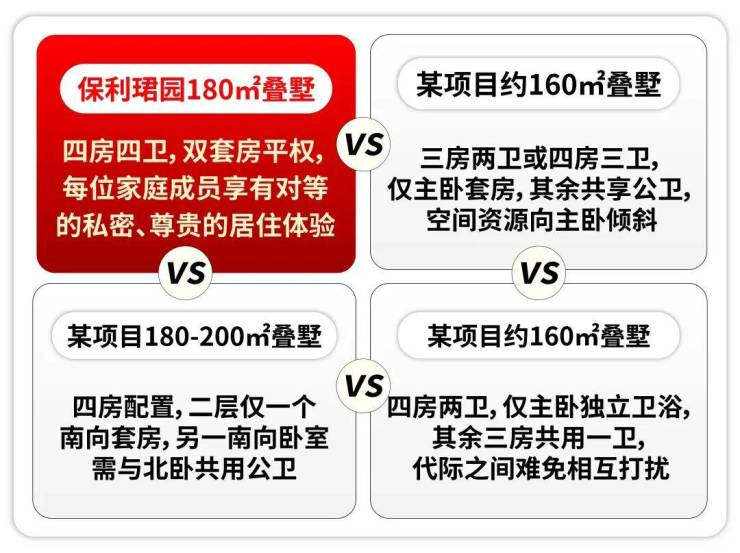 在建面约180m²叠墅产品内,保利做了四房四卫,其中包括了两个套房,每个居住和都能享受到更私密、尊崇的居住体验!