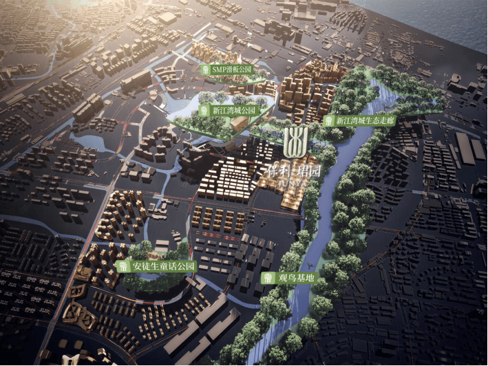 除此之外,项目周边环绕着新江湾城生态走廊、安徒生童话乐园、新江湾城公园、SMP滑板公园四大城市公园,约21公里绿道与约18公里河道交织成网,形成庞大的生态景观集群