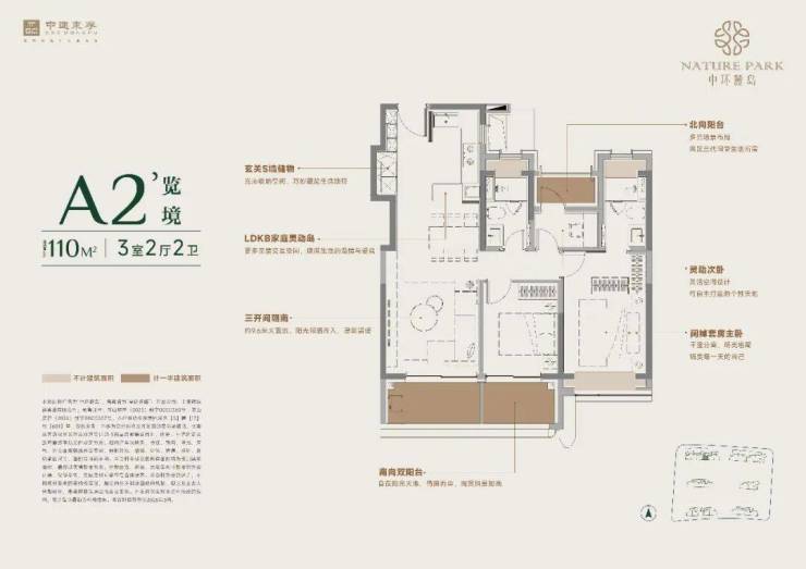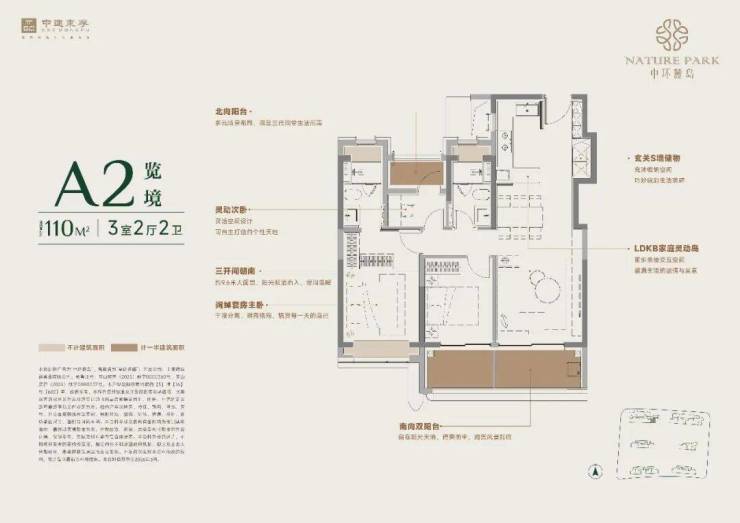 例如,约110㎡的3房户型,光3个阳台的面积就有约13㎡,而且只算一半面积的价格。