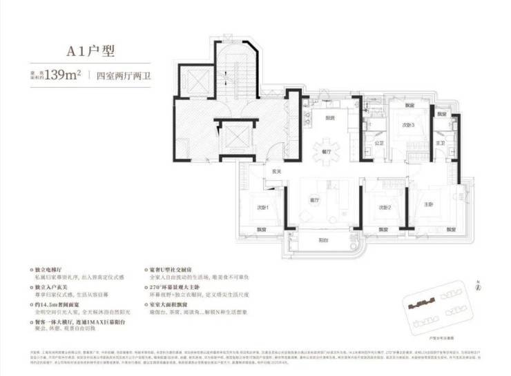建面约139㎡四房户型,更是形成"阳光平权"的居住体验。