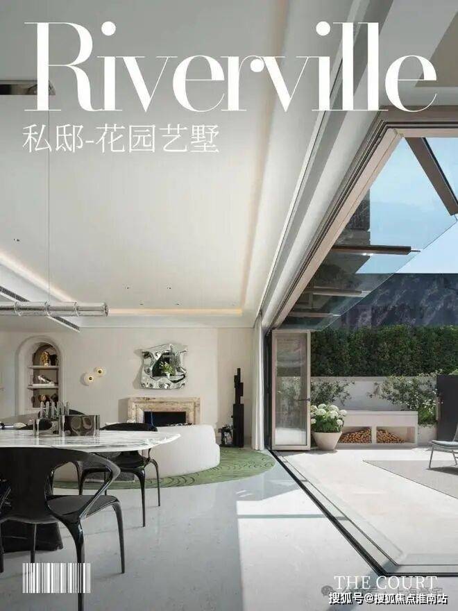 「无界空间」:客厅270度转角无柱设计,搭配落地玻璃,开阔视野将院中风景迎入日常。