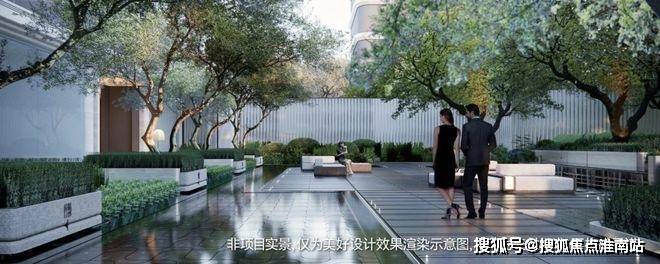 项目配置全域风雨连廊,以风雨连廊作为链接前场节点的视觉通廊,沿途景观一一铺展,当你归家时犹如穿越绿洲的旅行。