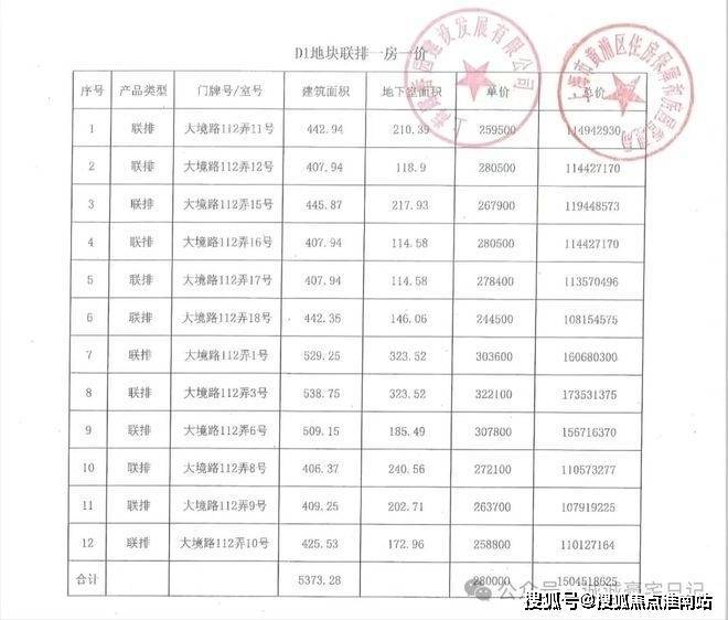 【一房一价表】