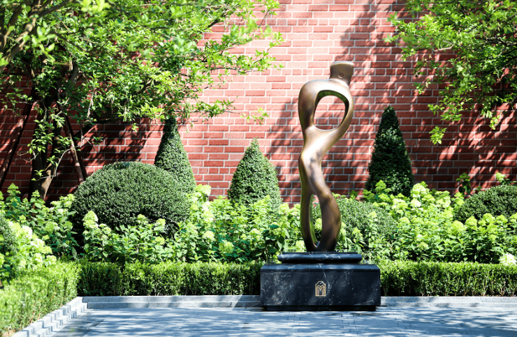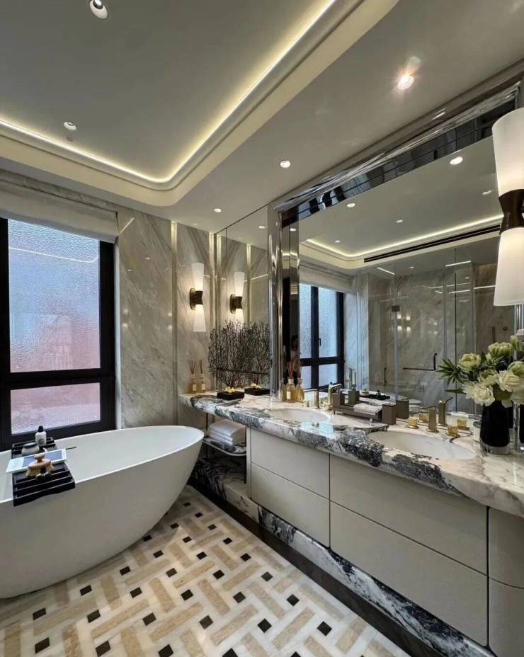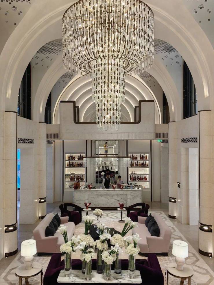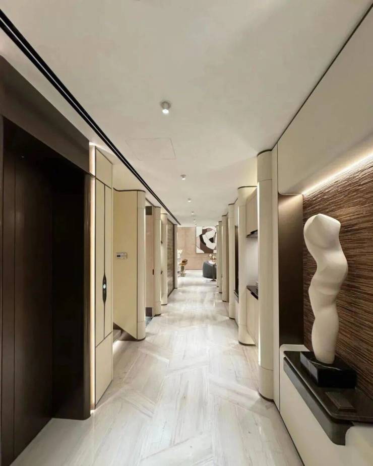 高定公区,重塑海派归家史诗;隐奢门庭:社区大门以古琦黑奢石手工锻造弧形幕墙,将珠宝镶嵌工艺融入建筑肌理;
