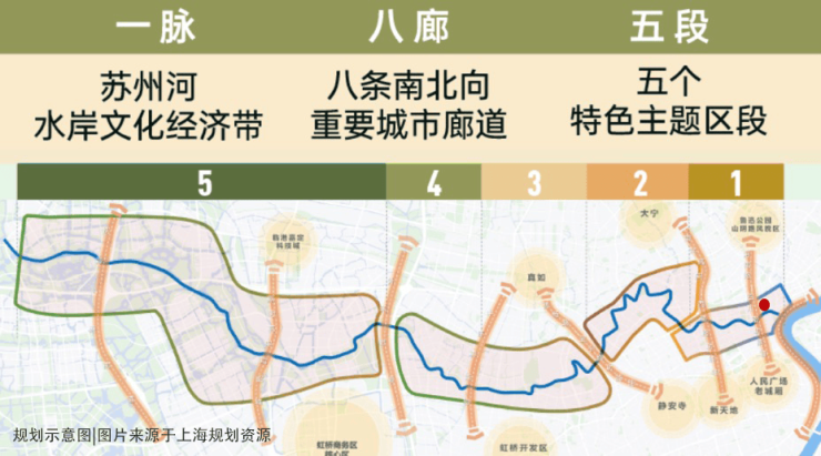『岁月里市,烟火新生』,苏河湾商业新名片:以苏河湾地区全新商业名片为规划定位,在海派优秀历史建筑集群之间,规划打造高端零售、高档餐饮、文化展览等格调商业,代言「上海历史文化生活新地标」。