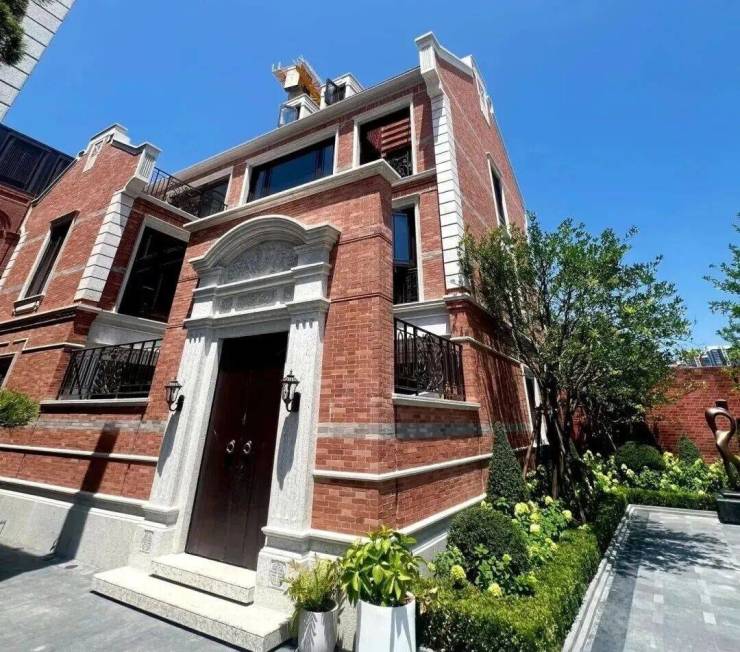 地上2-3层+挑高地下室,实用面积超150%(约455-600㎡);每户附赠15-60㎡私家庭院、观景露台,地下挑高空间可改造家庭影院/酒窖/藏品室,外立面采用手工凿毛石材、红砖及铜质线条,复刻海派石库门经典肌理。