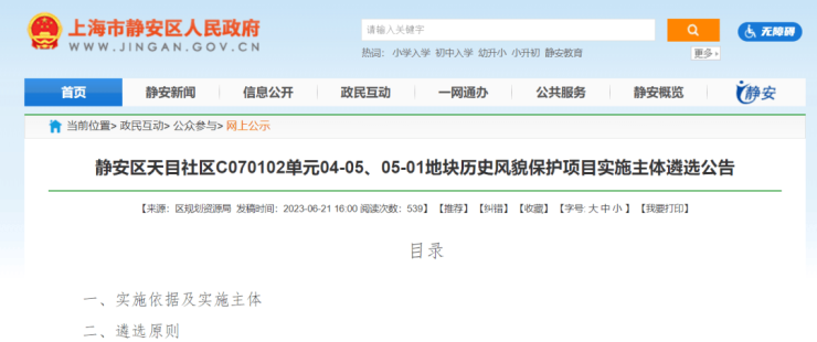 根据评分遴选相关事项,本次遴选报价以房地联动价21万元/㎡为基准。就在2023年7月21日,华发招商联合体官宣拿下静安天目社区04-05、05-01历史风貌保护项目:
