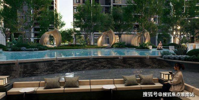 绿城春来晴翠营销中心热线4008818994(官方预约热线)泳池综合体」它打破了传统的物理边界,让这座泳池成为园区核心景观的同时,还跟架空层、林下空间、景观卡座等等,全都结合在了一起。围上了一圈弯弯曲曲的景观水系。还做了各种高差,泳池的水漫出来,流入的是一道又一道水中树池、卡座、廊架、沙发……就像带有生命力一般,点亮一个又一个场景。