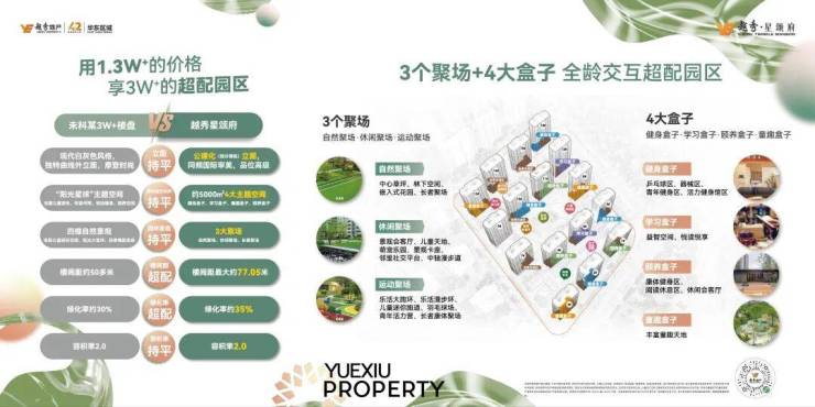 ◾全龄交互园区 架空首层设计景观导入“场景化”理念,以生活为蓝本,丰富主题景观场域与架空层多元功能空间互为呼应,以“自然聚场、休闲聚场、运动聚场”等3个聚场、“健身盒子、学习盒子、颐养盒子、童趣盒子”等4大盒子,打造全龄交互园区。架空多元功能空间设计,将空间社交化,为业主提供近5000方的户外延展生活空间,更为业主延展出安放个人爱好、邻里自在交流的丰盛生活天地。