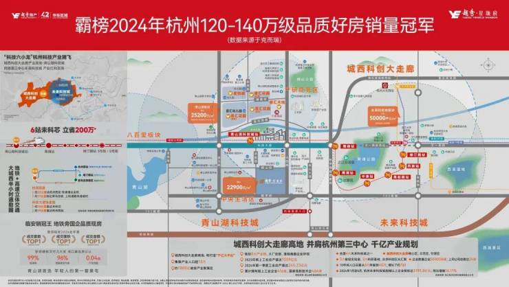 NO.3|叁 国企越秀地产,品质交付双保障国企越秀地产,15载深耕青山湖,共建建面约150万方大城,相逢11000+户家人,坚持品质立身、高质交付,备受市场认可,多次霸榜青山湖热销。据克尔瑞有数据可查年份记录,自2016-2024年青山湖科技城一手普通住宅网签量34155套,其中越秀地产8469套,占比24.2%。每卖出近4套,就有1套为越秀地产匠造。霸榜2024年杭州120-140万级品质好房销量冠军。(数据来源于:克而瑞)