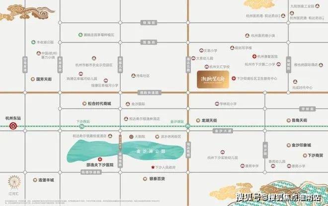 周边还有大型商业综合体和多个商业旗舰。附近有多所学校和著名高校。规划了两个市政公园, 毗邻金沙湖公园和杭州“小三亚”椰子树海滩。附近有著名的 三级甲等医疗机构。