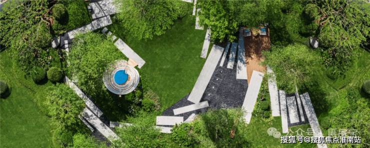 要知道上海已经很少有项目在社区内引入水景了,即使是一些千万级的豪宅,同样如此。而大华星曜不仅打造了具有曲线美感的树池,还在水景底部铺了数百片蓝钻瓷片,全角度弧形定制,水刀切割,用金属线条勾勒出水波的形状。