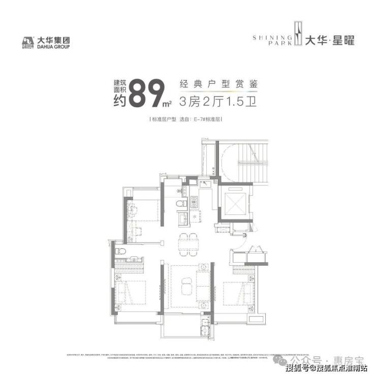 适合真正想要一步到位实现终极改善的小伙伴。建面约89㎡户型,三开间朝南,并且全卧室带飘窗,室内的采光、视野以及空间延展性都非常出色。