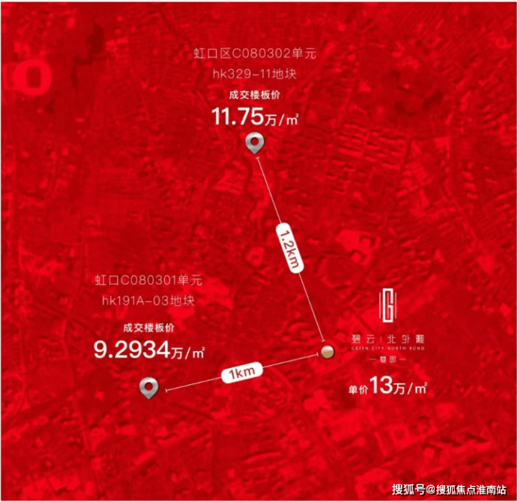 其次,2月20日,虹口区土地市场迎蛇年新春首单:虹口区C080302单元hk329-11,经过184轮竞拍,最终由金茂&庆隆以89.6435亿元成功竞得,楼板价117474元/㎡,溢价率 38.2%。