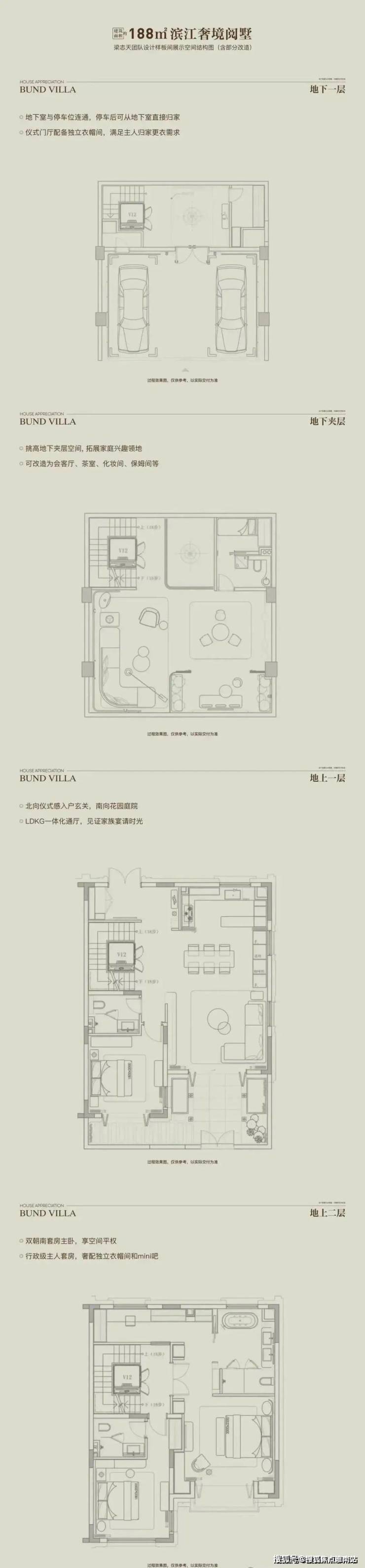 以“全两层+会所”的形态革新、花园露台地下室的全维空间、大面宽短进深的奢适格局,重构别墅生活场景。