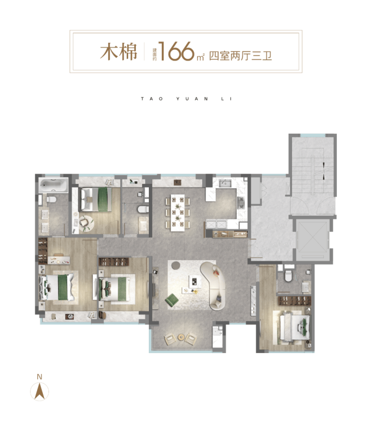 五进式品质归家,构建当代桃源礼序:通过新桃源会客厅社区广场与独立社区会客大堂、林荫归家步道、中央景观聚场、品质入户单元昭示性景墙+专属入户铺装、首层精装大堂五大节点,赋予归家路途更多逸趣与美好。