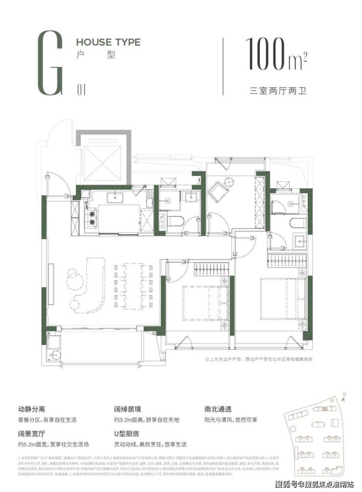 首先,面积段非常讨巧,主力建面约100㎡3房既满足了功能改善,又把总价严控在900万级。
