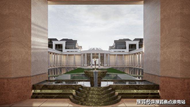 社区南门:约36米奢阔尺度,传承自凡尔赛宫的三泉林,对称仪制带来尊崇感,同时确保归家时人车分流,在保证安全的前提下,更带来从城市回归家园的心境转换。